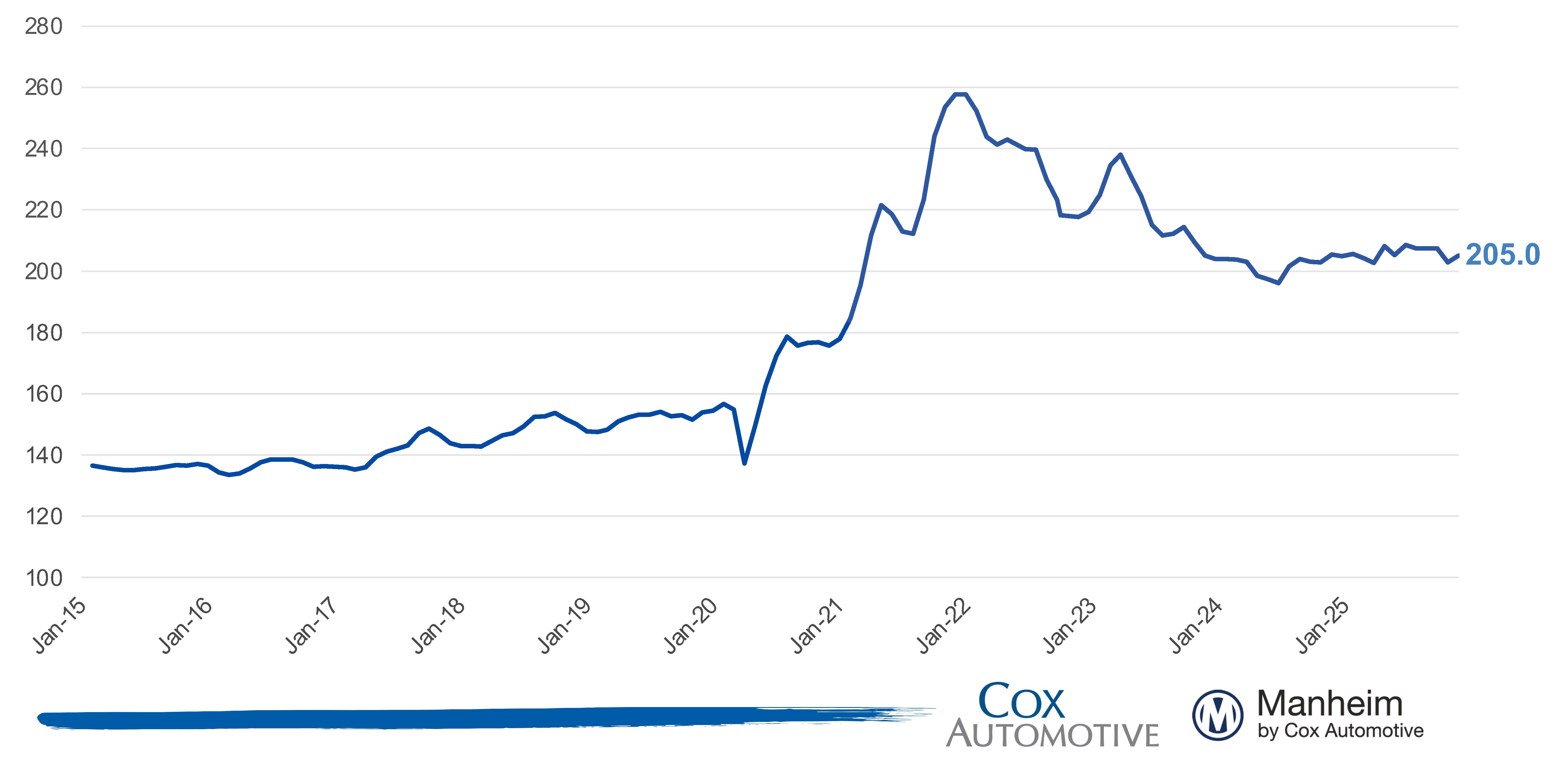 The Manheim Index is increasingly recognized by both financial and economic analysts as the premier indicator of pricing trends in the used vehicle market, but should not be considered indicative or predictive of any individual remarketer’s results.
