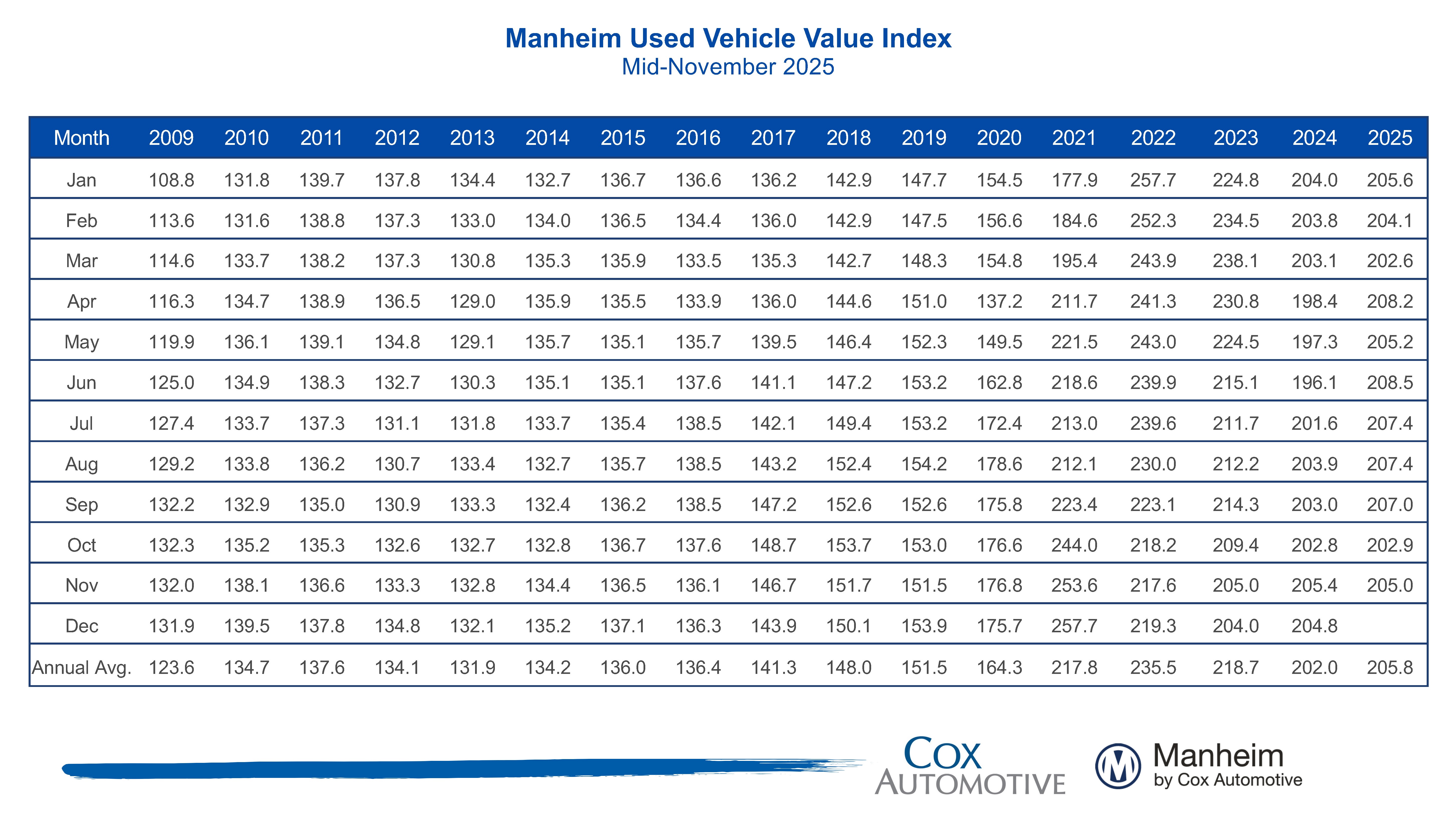 All questions related to the Manheim Used Vehicle Value Index and wholesale market can be sent to manheim.data@coxautoinc.com.